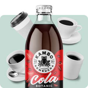 KAMBO KOMBUCHA turi gerokai mažiau kofeino nei kava, nesukelia nerimo ar staigių energijos šuolių.