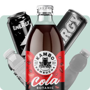 KAMBO KOMBUCHA turi kelis kartus mažiau cukraus nei įprasti gazuoti gėrimai, o natūrali fermentacija suteikia gaivą.